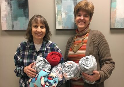 Donations of socks and throws are collected annually and taken to our local senior care center that we visit monthly and sing together.